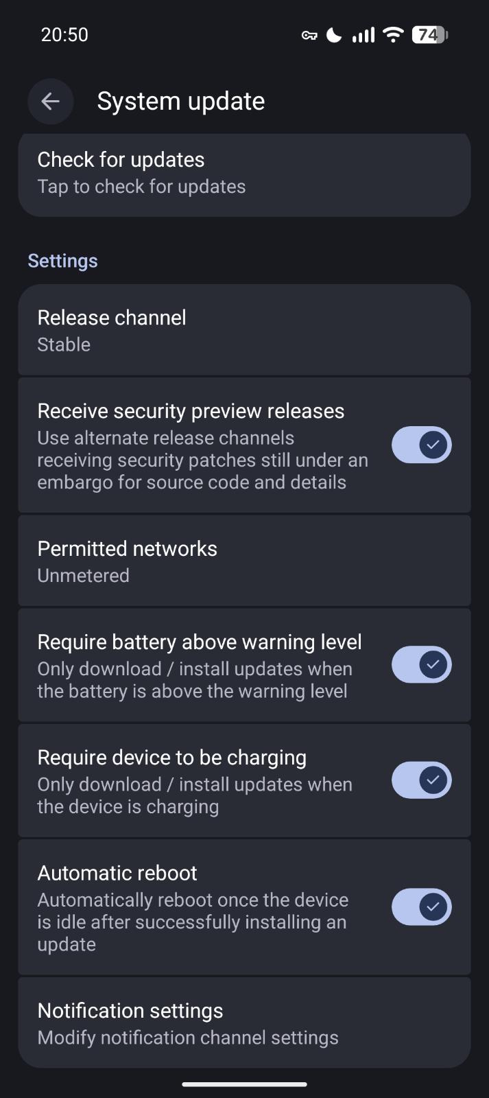 MetropleX tobian MetropleX you're either not on GrapheneOS or a seriously outdated version, please provide build number from SETTINGS>ABOUT PHONE>Down at the botto. Provide me this information and we can help without it we can't help and I will lock the thread.